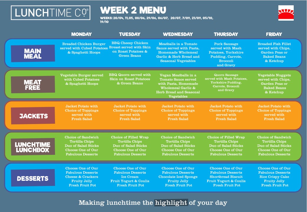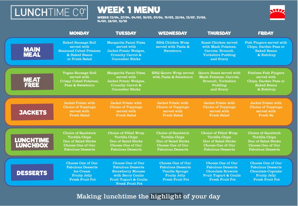 All of our school meals are provided by Lunchtime Co. As the leading provider of catering services to schools across the UK Lunchtime Co believe school lunches should be freshly prepared, great-tasting and attractively presented to engage pupils.